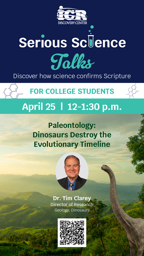 Join Dr. Tim Clarey for a compelling Serious Science session as he explains how dinosaurs destroy the evolutionary timeline.